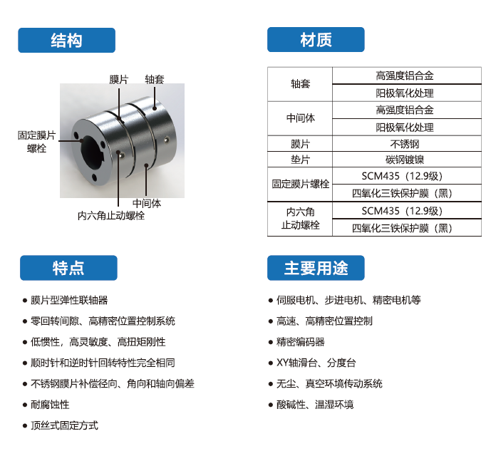 HSFP-G系列聯軸器采用高強度鋁合金材料,經過陽極氧化處理,廣泛用于伺服電機、步進電機、精密電機等。