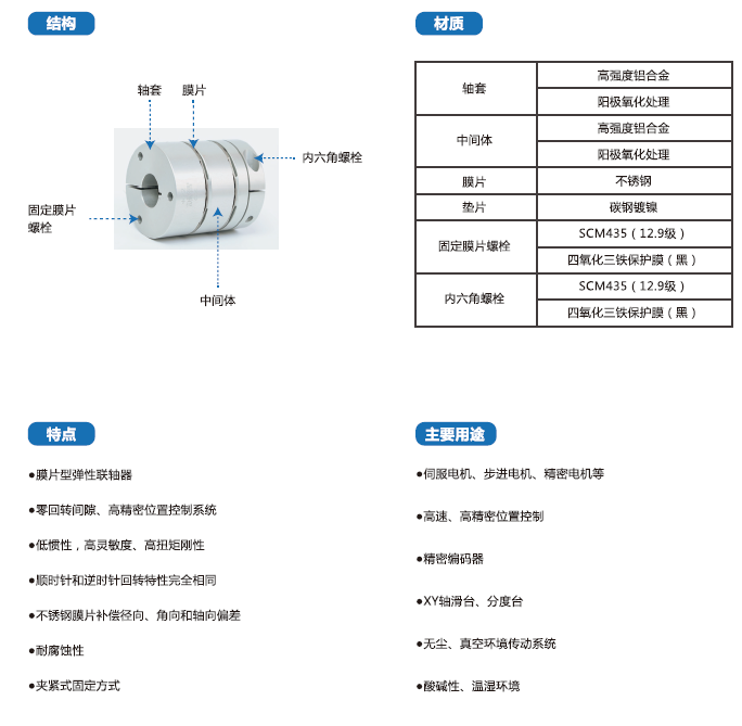 HSFP-C系列聯軸器采用高強度鋁合金材料,經過陽極氧化處理,廣泛用于伺服電機、步進電機、精密電機等。