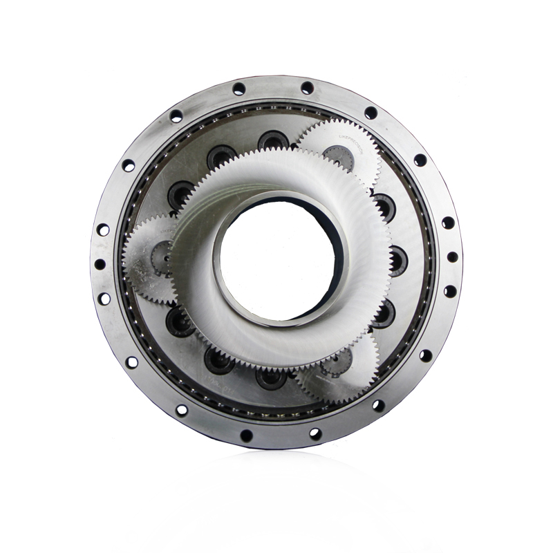 直齒輪與曲柄軸相連接,變?yōu)榈诙p速部的輸入。在曲柄軸的偏心部分,通過滾動軸承安裝RV齒輪。另外,在外殼內(nèi)側(cè)僅比RV齒輪數(shù)多一個的針齒,以同等的齒距排列。