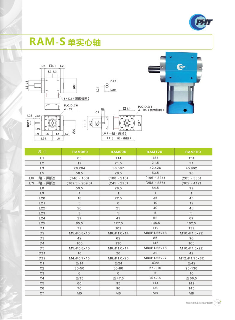 RAM-S系列是單實(shí)心軸設(shè)計(jì)。 鋁合金材質(zhì)可提高散熱能力,減緩溫升現(xiàn)象造成影響。 多樣化的出力軸可因應(yīng)各種場合,客制化的入力端可搭配各式馬達(dá)。 提供各式特色之減速機(jī),供使用者依需求選購。 特殊油封設(shè)計(jì),正常使用下不需保養(yǎng)亦不用更換潤滑油,可延長使用壽命。 各式特色,體積小,省空間,噪音低,輸出扭矩高,安裝容易,可搭配馬達(dá)型號廣泛。 RAM搭配DM,一體成型的齒輪組,可有效的減低噪音。 RAM搭配DH,最佳的性價(jià)比,可廣泛應(yīng)用于各種場合。