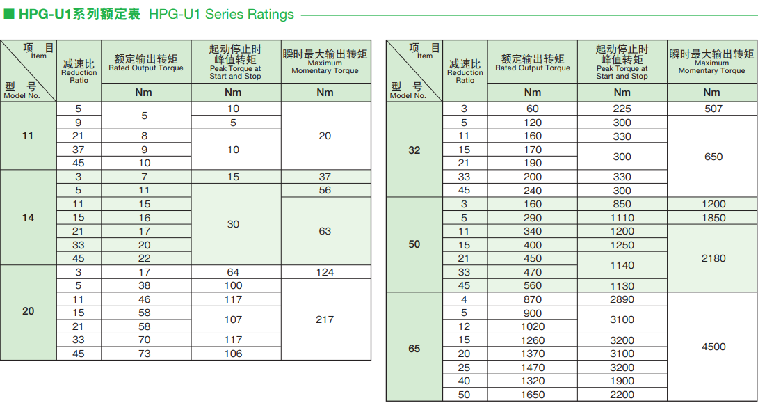 高精度行星齒輪減速機,可簡單的安裝到各公司的伺服電機上。 諧波發生器:橢圓形凸輪的外圈上嵌入薄型的滾珠軸承,整體呈一橢圓形狀的零件。軸承的內圈固定于凸輪之上,外圈則介由滾珠彈性變形。一般安裝在輸入軸上。 柔輪:具有薄壁杯型的金屬彈性體的零件。杯的開口部外圈刻有齒形。柔輪的底部稱為膜,通常安裝到輸出軸上。 剛輪:剛性環狀的零件。內側上刻有與柔輪同樣大小的齒形,且比柔輪多2個齒數。一般固定在外殼上。