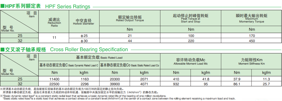 中空軸結構(輸入/輸出軸位于同一軸上),型號分為25號、32號2種,減速比1種,為1/11。最高轉速,25號為500r/min,32號為430r/min。 諧波發生器:橢圓形凸輪的外圈上嵌入薄型的滾珠軸承,整體呈一橢圓形狀的零件。軸承的內圈固定于凸輪之上,外圈則介由滾珠彈性變形。一般安裝在輸入軸上。 柔輪:具有薄壁杯型的金屬彈性體的零件。杯的開口部外圈刻有齒形。柔輪的底部稱為膜,通常安裝到輸出軸上。 剛輪:剛性環狀的零件。內側上刻有與柔輪同樣大小的齒形,且比柔輪多2個齒數。一般固定在外殼上。